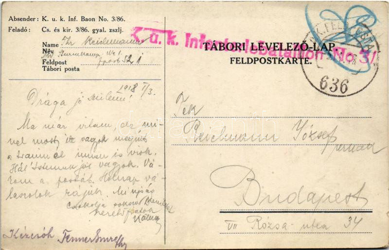 1918 K.u.k. Infanterie Bataillon No. 3/86. am Isonzo 19154-6-1917 - Fe... https://www.darabanth.com/hu/470-Gyorsarveres/470.0/Kepeslapok/Katonai~2000049/1918-Kuk-Infanterie-Bataillon-No-386-am-Isonzo-19154-6-1917-Feldpostkarte-Cs-es-kir~II3183938