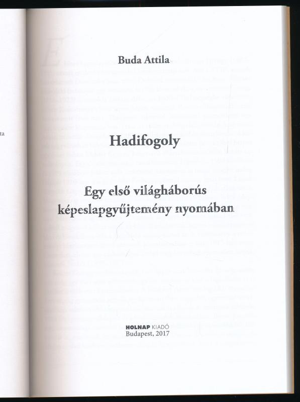 Buda Attila: Hadifogoly - Egy első világháborús képeslapgyűjtemény nyo... https://www.darabanth.com/hu/470-Gyorsarveres/470.0/Kepeslapok/Kepeslap-szakirodalom~2000001/Buda-Attila-Hadifogoly-Egy-elso-vilaghaborus-kepeslapgyujtemeny-nyomaban-138-old-Holnap~II3182472