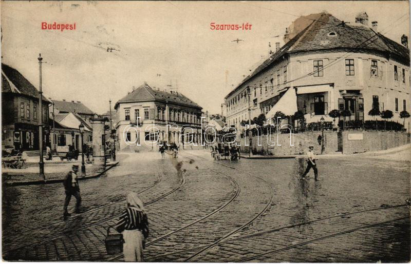 1910 Budapest I. Tabán, Szarvas tér, villamossín, omnibusz, üzletek https://www.darabanth.com/hu/470-Gyorsarveres/470.0/Kepeslapok/Magyarorszag~2000005/1910-Budapest-I-Taban-Szarvas-ter-villamossin-omnibusz-uzletek~II3179804
