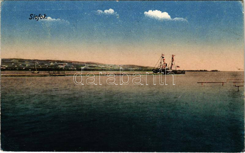 Leírás: 1926 Siófok, gőzhajók zászlókkal (EK)
