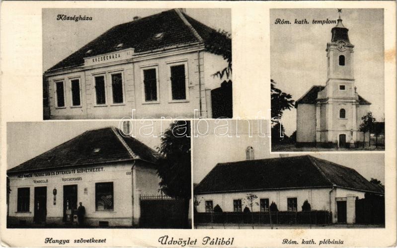 1935 Páli, Községháza, Római katolikus templom és plébánia, Hangya szö... https://www.darabanth.com/hu/470-Gyorsarveres/470.0/Kepeslapok/Magyarorszag~2000005/1935-Pali-Kozseghaza-Romai-katolikus-templom-es-plebania-Hangya-szovetkezet-uzlete-Ste~II2558172