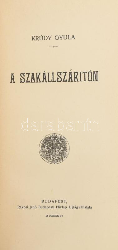 Krúdy Gyula: A szakállszárítón. Modern Írók Könyvtára. Bp., 1906, Rákosi Jenő (Budapesti Hirlap-ny.), 186+(6) p. Első kiadás. Kiadói szecessziós, aranyozott, festett egészvászon sorozatkötésben, márványozott lapélekkel, jó állapotban.