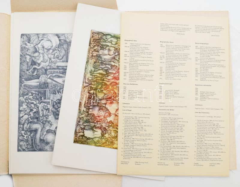 Frank János: Szabó Vladimir. Bp., 1976, Corvina, 8 p.+12 t (ofszet reprodukciók). Magyar, angol, francia, és német nyelven. Kiadói papír mappa, hiánytalanul, a mappa gerince sérült, máskülönben jó állapotban.