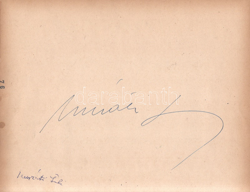 Muráti Lili (1911-2003) magyar színésznő és írónő fiatalkori autográf ... https://www.darabanth.com/hu/470-Gyorsarveres/470.0/Mutargy-papirregiseg-egyeb/Alairas~500026/Murati-Lili-1911-2003-magyar-szineszno-es-irono-fiatalkori-autograf-alairasa-egy-190x245-mm-es~II3183883