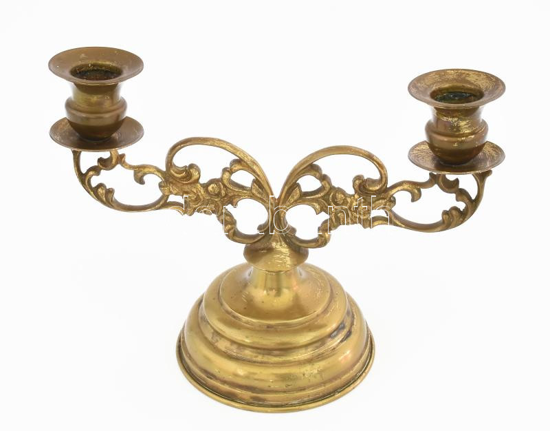 Leírás: Réz kétágú gyertyatartó, 21x15,5 cm