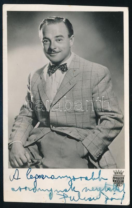 Leírás: Juhász József (1908-1974) színművész dedikációja fotólapon