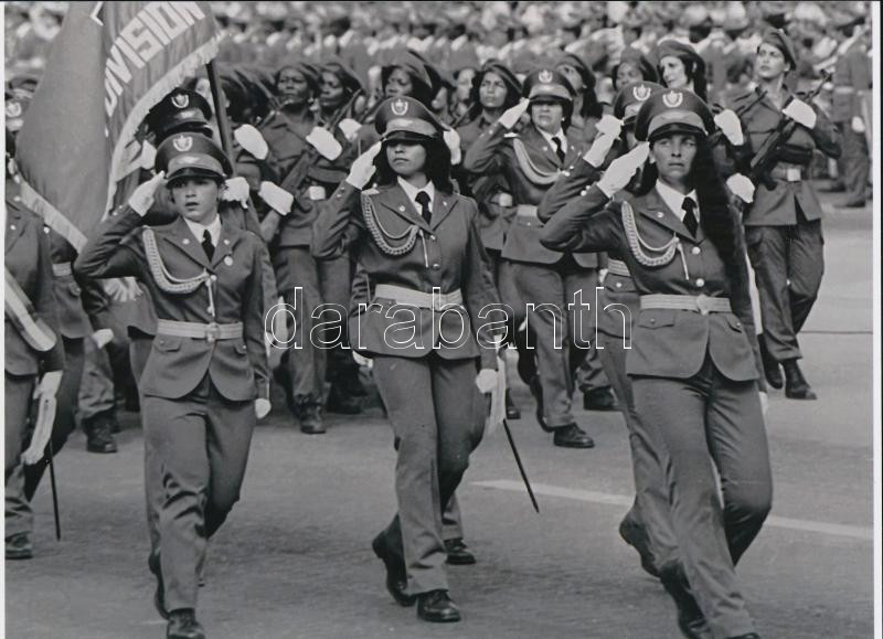 cca 1962 Alberto Korda (1928-2001) felvétele a kubai forradalmi hadsereg női katonáiról, Kotnyek Antal (1921-1990) budapesti fotóriporter hagyatékából 1 db modern nagyítás, jelzés nélkül, (Kotnyek Antal készítette a Magyarországon is bemutatott Kuba című fotó- és dokumentumkiállítás fotóanyagát), 15x21 cm
