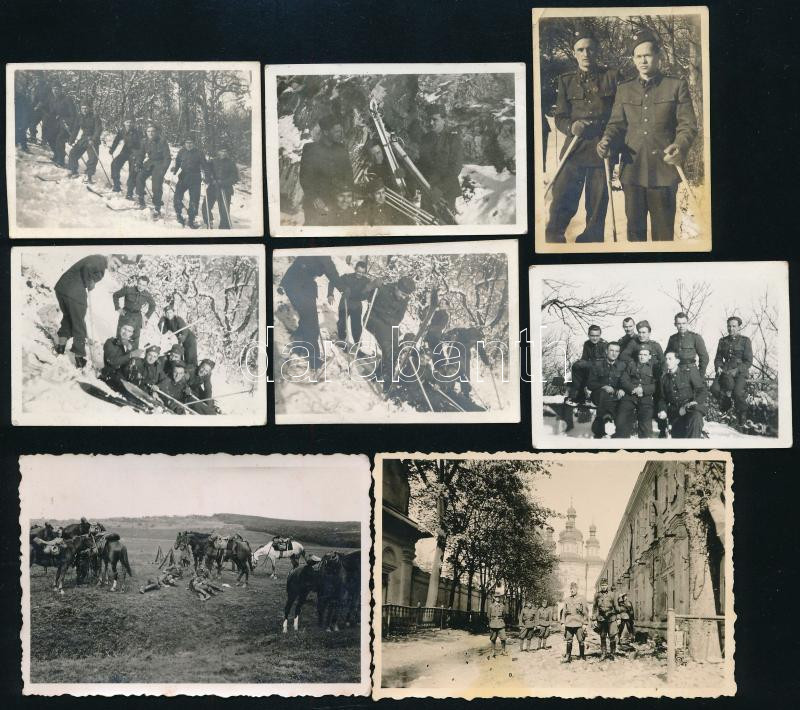 Leírás: cca 1940 Vegyes katonai fotó tétel, 8 db, 6×4,5 és 6,5×9 cm közötti méretekben