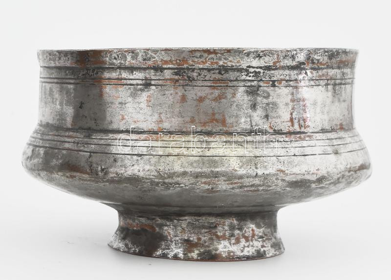 Leírás: 1808, Kínáló. Belső-Ázsia, ónozott világosbronz, felirattal gravírozott, d: 20 cm, m: 12 cm