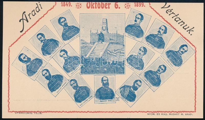 1899 Arad, Aradi vértanúk emlék képeslap és ajánló reklám nyomtatványa https://www.darabanth.com/hu/470-Gyorsarveres/470.0/Mutargy-papirregiseg-egyeb/Nyomtatvanyok~1000014/1899-Arad-Aradi-vertanuk-emlek-kepeslap-es-ajanlo-reklam-nyomtatvanya~II3179903