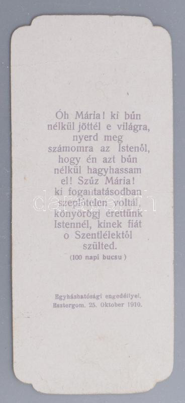 Leírás: 1910 Remete Mária (Máriaremete) litho szentkép, 10x4 cm