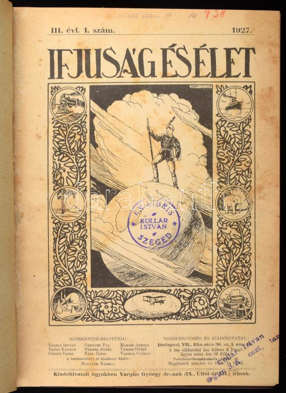 1927-1928 Ifjuság és Élet III. évf. 1-20. sz., 1927. szeptember - 1928. június, benne Temesi (Temesy) Győző: A csejennek romlása c. indián történet (először ebben a folyóiratban, részletekben közölve jelent meg) és egyéb érdekes írások. Modern félvászon-kötésben, helyenként foltos, sérült, javított lapokkal, tulajdonosi bélyegzőkkel. + 1937-1938 Ifjú Évek XVI. évf. 1-10. sz., 1937. szeptember - 1938. június. Félvászon-kötésben, helyenként kissé foltos lapokkal, ceruzás bejegyzésekkel, egy-két sérült lappal.