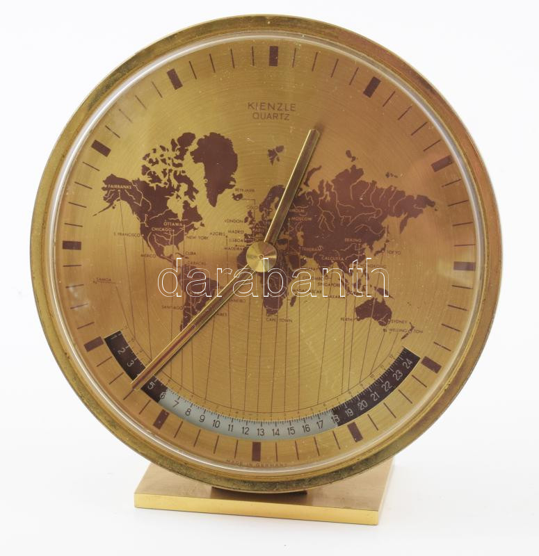Leírás: Kienzle asztali kvarc óra, világidő kijelzéssel, m: 14 cm