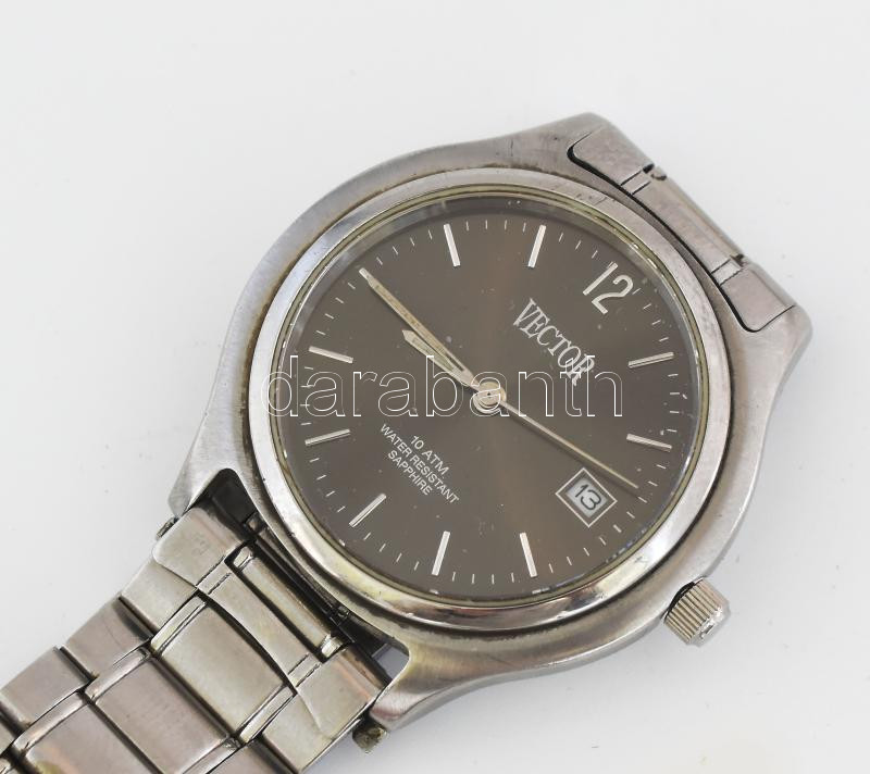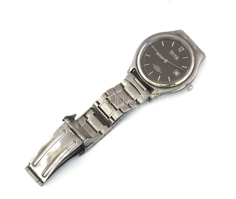 Leírás: Vector karóra, kvarc, dátumkijelzéssel, fém szíjjal, számlap d: 30 mm