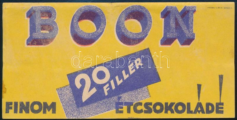 Leírás: "Boon finom étcsokoládé" art deco számolócédula. Bp., Weiss L. és F., hullámos, kissé foltos.