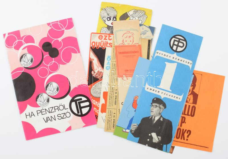 Leírás: cca 1960-1970 OTP reklámkiadványok: prospektusok, könyvjelzők, stb., össz. 11 db, vegyes állapotban