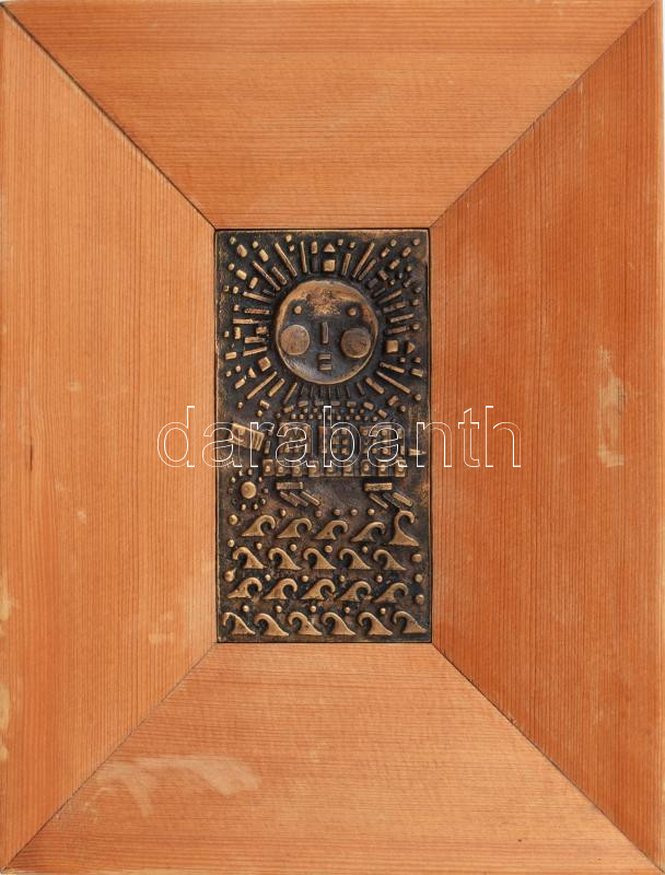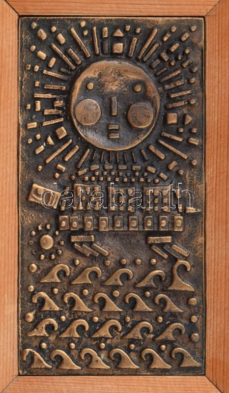 Leírás: Kopcsányi Ottó (1933-): Napisten Bronz plasztika. címkével jelzett 12x6,5 cm Fa keretben 24x18 cm