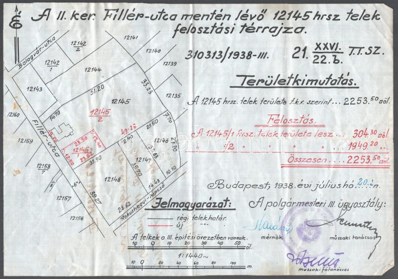 1938 Bp. II. kerület, Fillér utcai telek felosztási tervrajza https://www.darabanth.com/hu/470-Gyorsarveres/470.0/Mutargy-papirregiseg-egyeb/Tortenelmi-dokumentumok-keziratok-erdekessegek~2000110/1938-Bp-II-kerulet-Filler-utcai-telek-felosztasi-tervrajza~II3156064