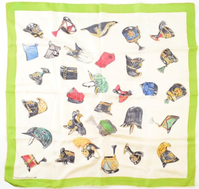 Leírás: Szepessy Schaurek Ottmár (1901-1965) olimpikon, lovaglótanár selyemkendője, 75x75 cm