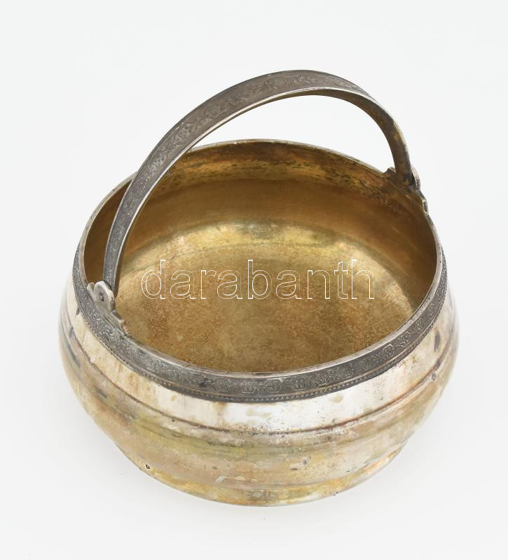 Leírás: Ezüst (Ag) füles kínáló, jelzett (mesterjeggyel), d: 11 cm, nettó: 192 g