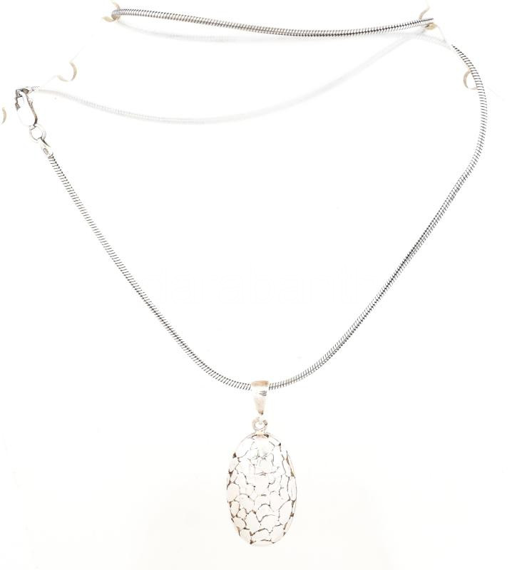 Leírás: Ezüst(Ag) kígyó nyaklánc áttört ovális medállal, jelzett, h: 50 cm, 4,2×1,7 cm, nettó: 13,1 g