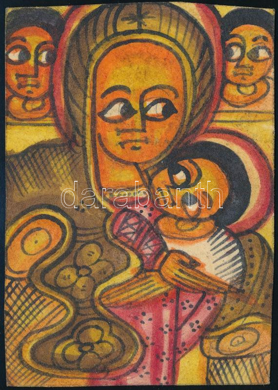 Leírás: Jelzés nélkül: Anya gyermekével. Vegyes technika, karton, 16x11,5 cm