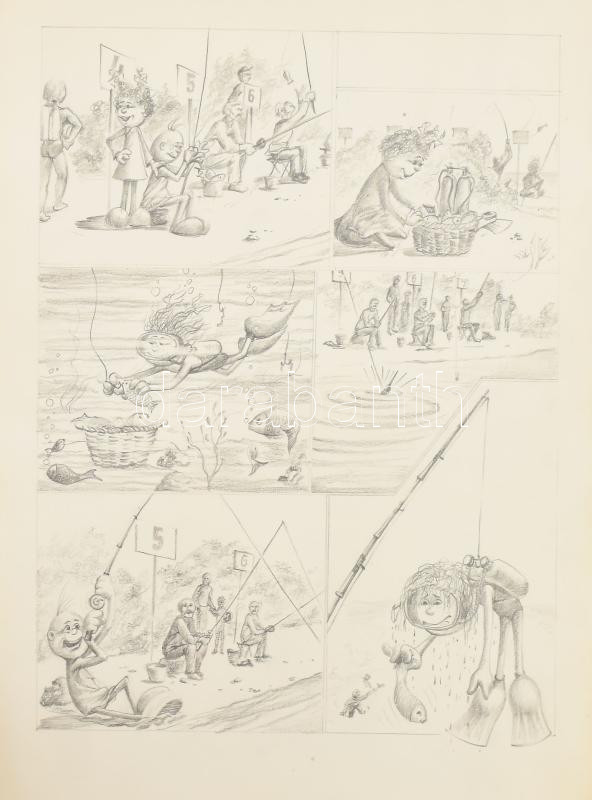 Leírás: Jelzés nélkül: Csip-csup (képregény 7 lapon). Ceruza, papír, jelzés nélkül, 2 db paszpartuban. 30,5x21,5 cm