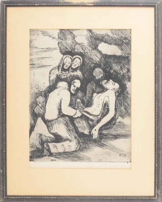 Olvashatatlan jelzéssel: Jézust sírba teszik. Hidegtű, papír, fakeretb... https://www.darabanth.com/hu/471-Gyorsarveres/471.0/Festmenyek-es-grafikak/Festmenyek-es-grafikak-jelzessel-jelzes-nelkul~500002/Olvashatatlan-jelzessel-Jezust-sirba-teszik-Hidegtu-papir-fakeretben-38-5C39729-5-cm~II3190030