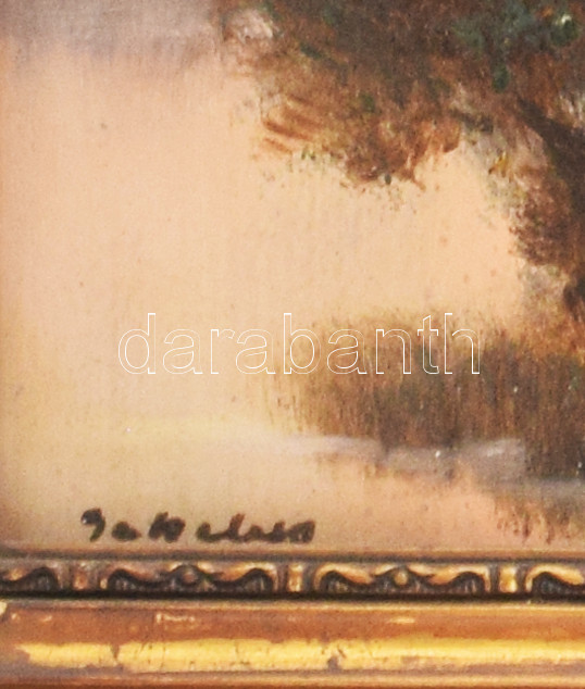 Leírás: Olvashatatlan jelzéssel. Vízparti virágzás. Olaj, karton. Üvegezett, dekoratív, kissé sérült fakeretben. 18x25 cm