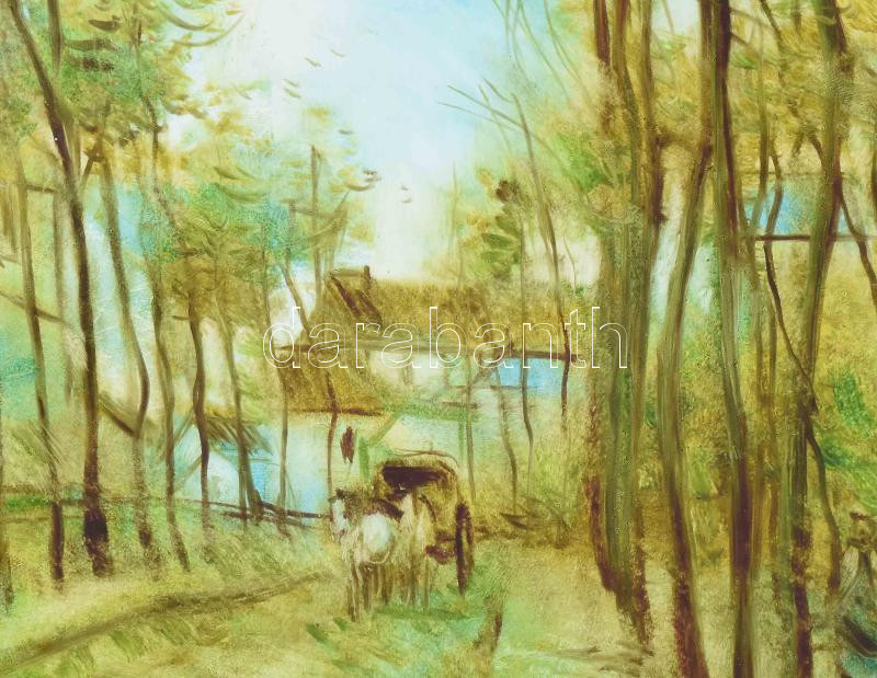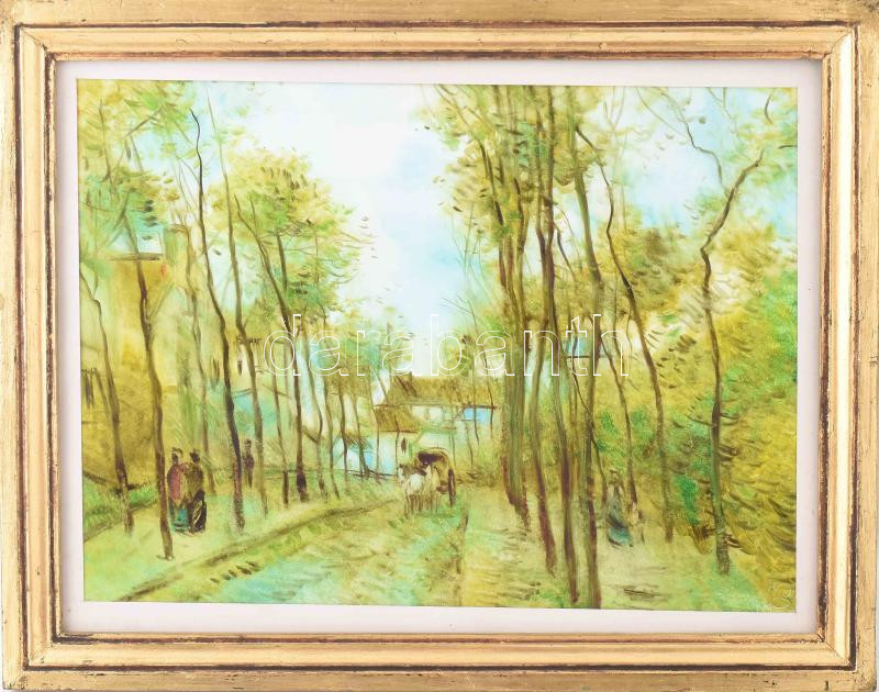 Leírás: Olvashatatlan jelzéssel (jobbra lent): Sétálók. Olaj, falemez, jelzett. Üvegezett fakeretben, 30×40 cm