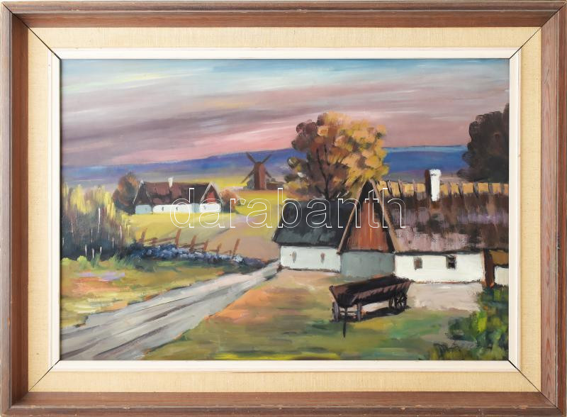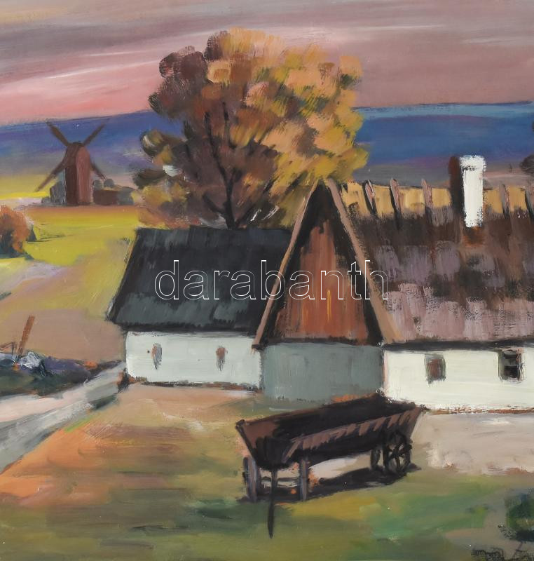 Leírás: Rosen (?) jelzéssel: Vidéki táj. Olaj, farost. Fakeretben, 38,5x56 cm