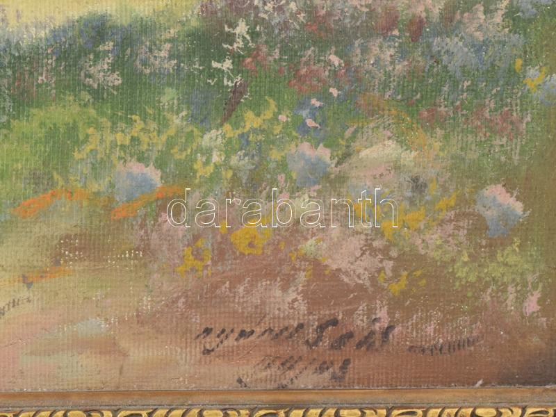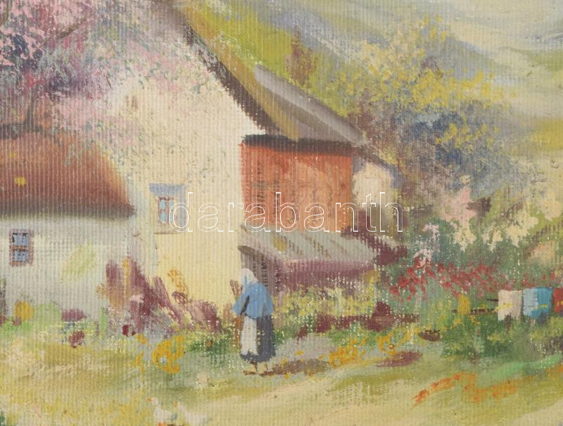 Leírás: Agárdi Soós Lajos (működött a XX. sz elején-közepén): Libapásztorlány. Olaj, vászon, jelzett. Dekoratív, sérült fakeretben, 60x80 cm
