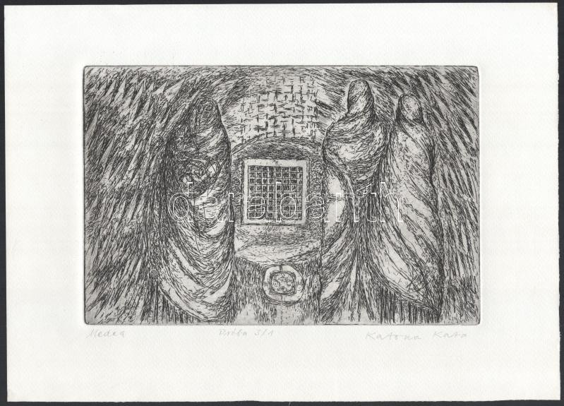Leírás: Katona Kata (1942-): Medea. Rézkarc, papír, jelzett, próbanyomat 3/1 számozással. 16,5x24,5 cm