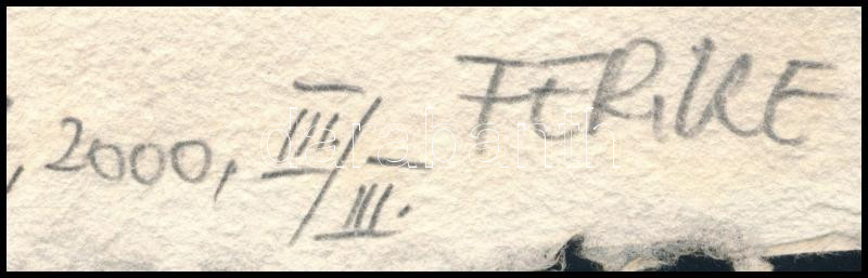 Leírás: Marosán Ferenc (?-2015): "Haiku (vonal)", 2000. Indigónyomat, tojáslevonat, merített papír, jelzett, számozott: III/III. 15x17 cm