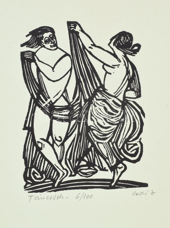 Leírás: Perei Zoltán (1913-1992): Táncosok. Linómetszet, merített papír, jelzett, 6/100 számozással. 15x11 cm