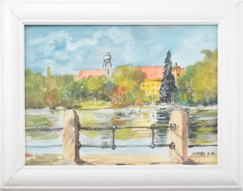Leírás: Radicsné Hídvégi Katalin (1946-): Tatai Öreg-tó. Akvarell, pasztell, papír, jelzett. Üvegezett keretben. 18×24 cm