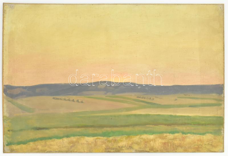 Leírás: Sárdy Brutus (1892-1970): Naplemente, 1936. Olaj, vászon, jelezve jobbra lent, kartonra kasírozva, 38x54,5 cm