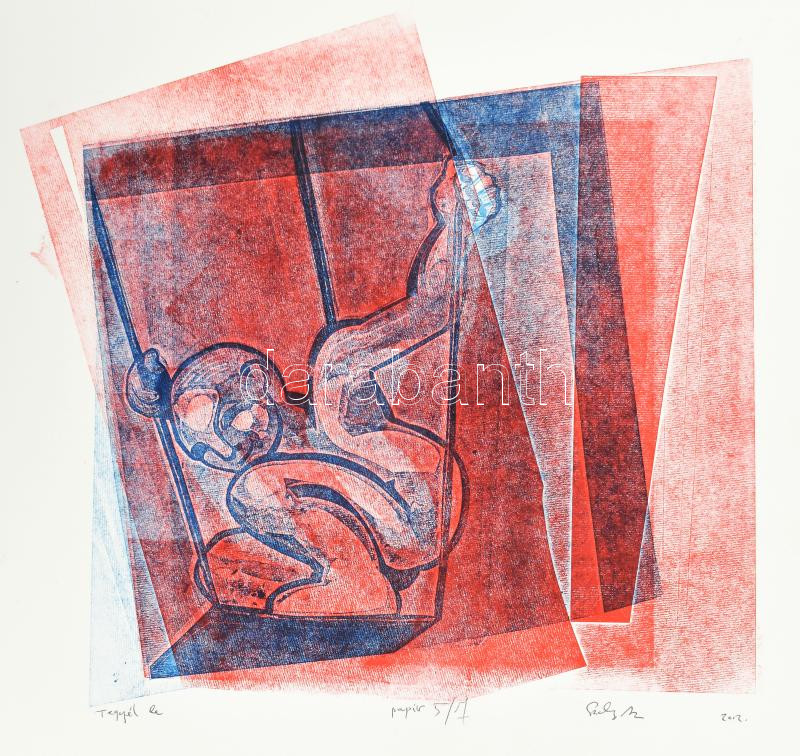 Leírás: Szalay Miklós (1972-): Tegyél le, 2002. Papírmetszet, papír, jelzett, 5/7 számozással. 25,5x28 cm