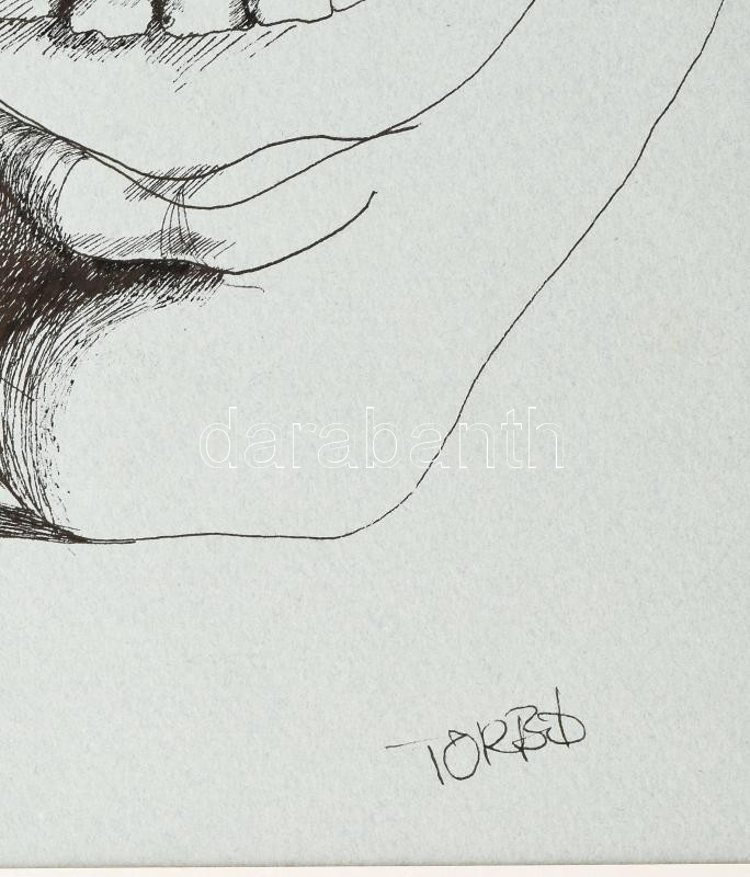 Leírás: Torbó Gyula (?1940-?): Nevető álarc. Tus, papír, jelzett, paszpartuban, 26x18 cm