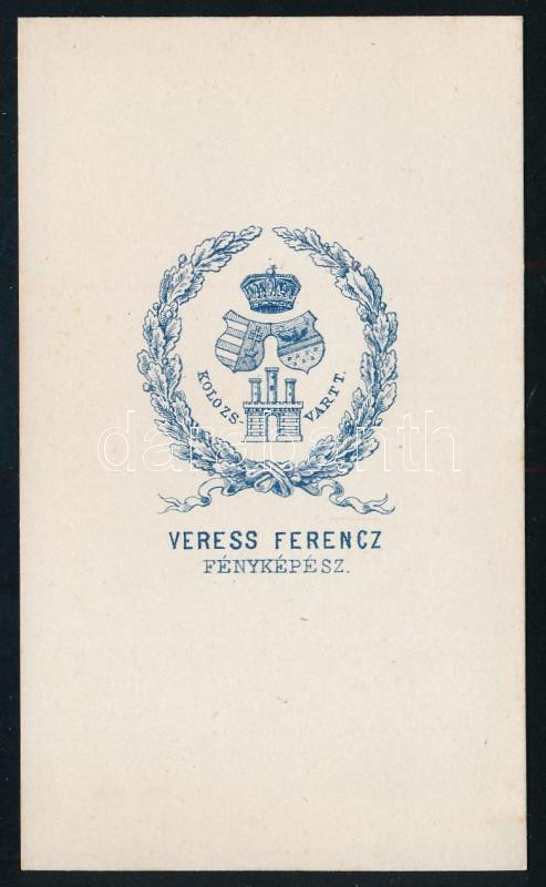 cca 1860 Előkelő fiatal férfi egészalakos portréja, keményhátú fotó Veress Ferenc kolozsvári műterméből; erdélyi és magyar címeres hátlappal; 10,5x6 cm