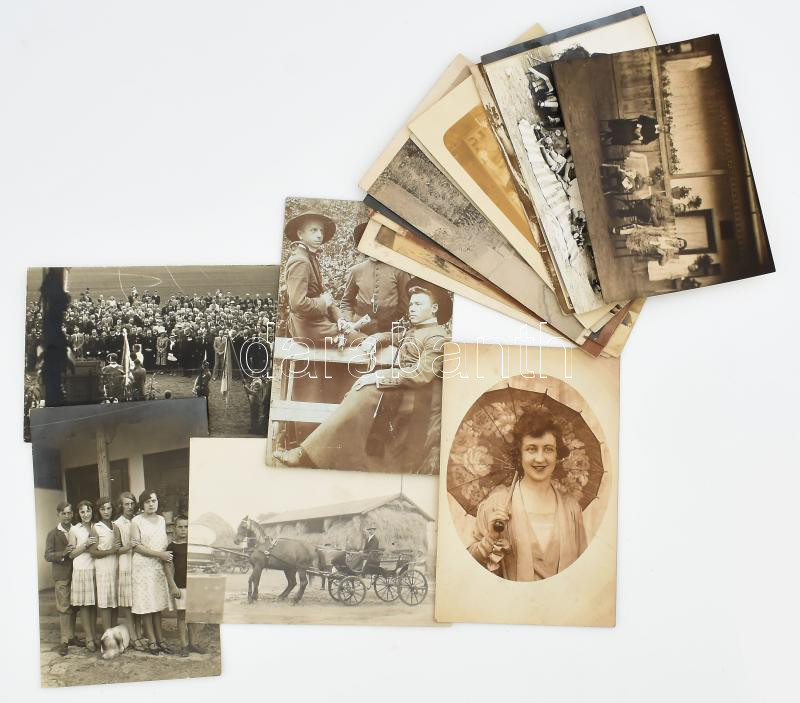 Leírás: cca 1910-1930 19 db vegyes érdekes fotólap: ünnepségek, parkok, stb