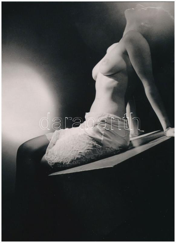 cca 1952 ,,Eredetileg igazolványképet rendelt, de volt még idő egy kis huncutságra is", szolidan erotikus felvétel, 1 db modern nagyítás, jelzés nélkül, 21x15 cm