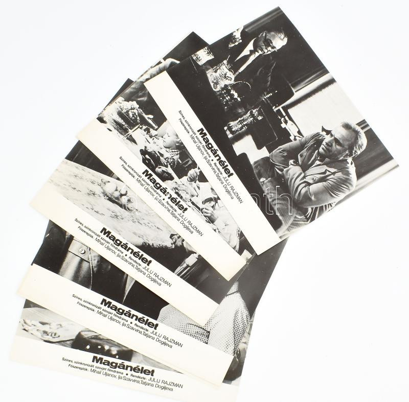 cca 1989 előtt készült ,,Magánélet" című szovjet film jelenetei és szereplői, 7 db produkciós filmfotó (vitrinfotó, lobbyfotó) nyomdatechnikával sokszorosítva kartonpapírra, egyoldalas nyomással, a használatból eredő (esetleges) kisebb hibákkal, 18x24 cm