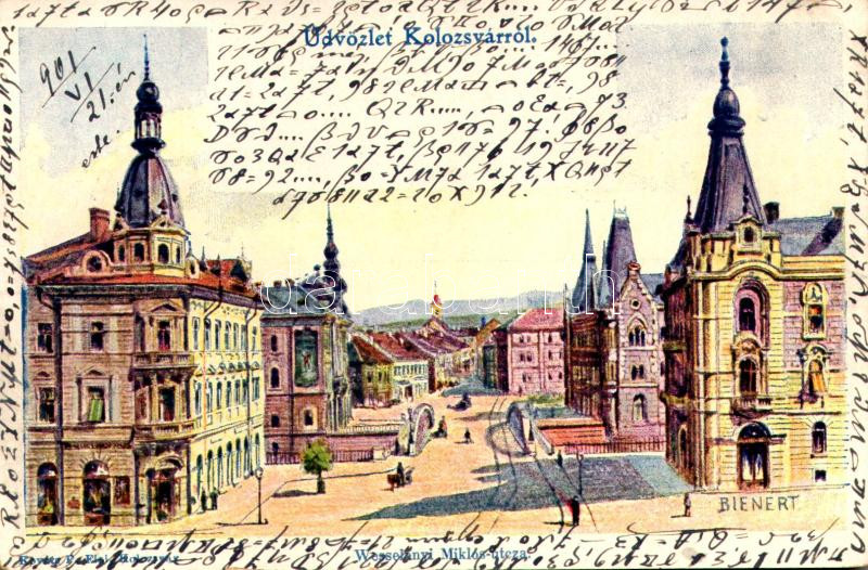 Leírás: 1901 Kolozsvár, Cluj; Wesselényi Miklós utca. Kováts P. fiai kiadása + titkosírás / street + cryptography s: Bienert