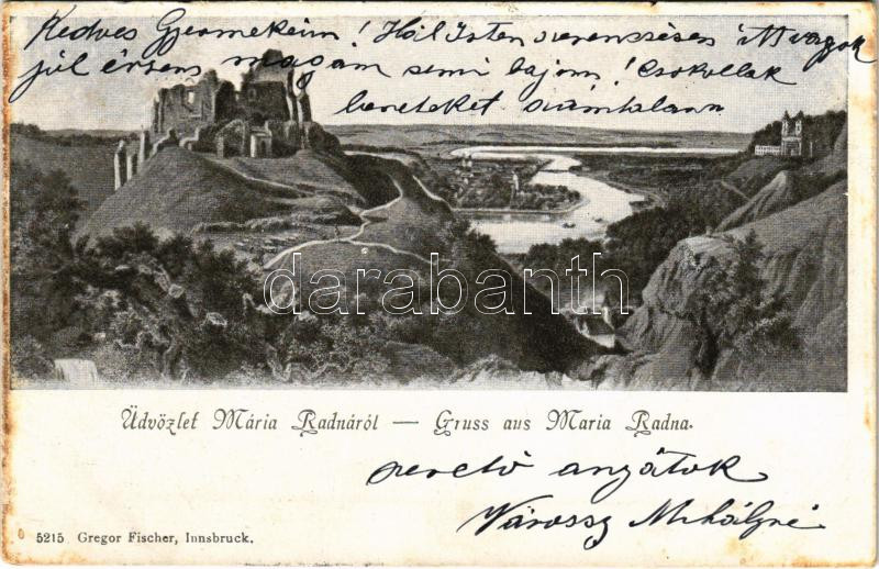 Leírás: 1902 Lippa, Lipova; Solymosi vár, Máriaradna. Gregor Fischer kiadása / Cetatea Soimos / castle ruins, Radna (kis szakadás / small tear)