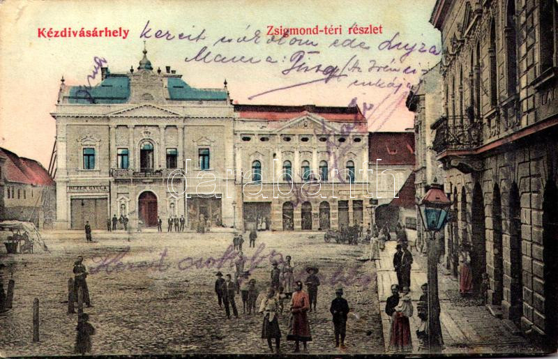 Leírás: 1909 Kézdivásárhely, Targu Secuiesc; Zsigmond tér, Jancsó szálloda, Rezer Gyula üzlete, piac. Gyárfás Károly kiadása / square, hotel, shops, market (EK)