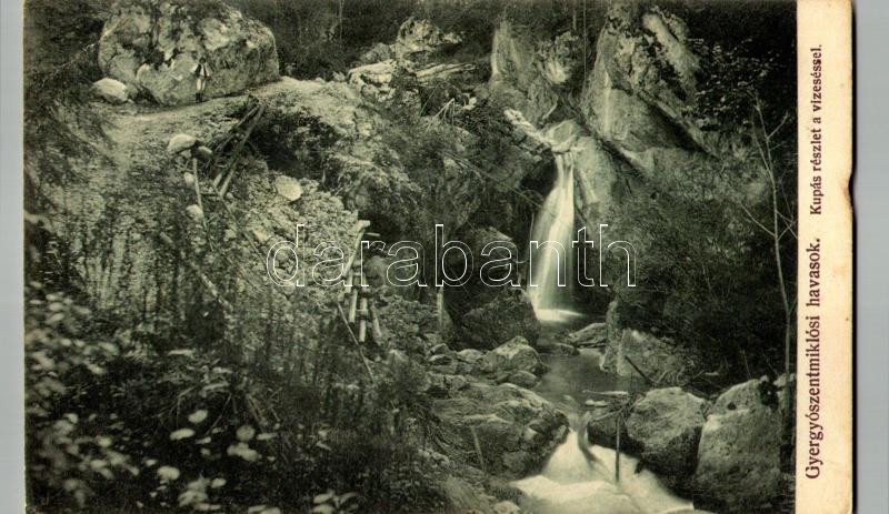 Leírás: 1913 Gyergyói-havasok, Muntii Giurgeu (Gyergyószentmiklós, Gheorgheni); Kupás részlet a vízeséssel. Burján és Székely kiadása / waterfall (b)