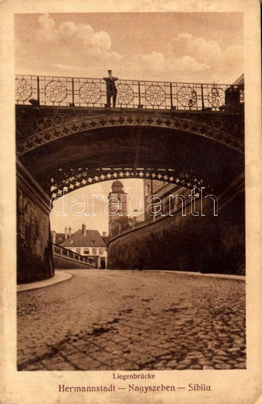 1913 Nagyszeben, Hermannstadt, Sibiu; Liegenbrücke / híd / bridge (ázo... https://www.darabanth.com/hu/471-Gyorsarveres/471.0/Kepeslapok/Erdely~2000006/1913-Nagyszeben-Hermannstadt-Sibiu-Liegenbrucke-hid-bridge-azott-wet-damage~II3188555