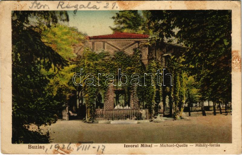 1926 Buziásfürdő, Baile Buzias; Izvorul Mihai / Michael-Quelle / Mihál... https://www.darabanth.com/hu/471-Gyorsarveres/471.0/Kepeslapok/Erdely~2000006/1926-Buziasfurdo-Baile-Buzias-Izvorul-Mihai-Michael-Quelle-Mihaly-forras-spa-spring-so~II3042856