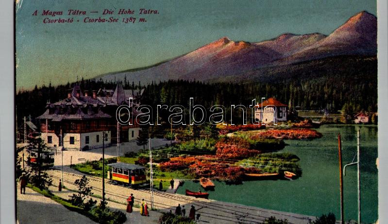 1918 Tátra, Magas-Tátra, Vysoké Tatry; Csorba tó, villamos / Strbské P... https://www.darabanth.com/hu/471-Gyorsarveres/471.0/Kepeslapok/Felvidek~2000007/1918-Tatra-Magas-Tatra-Vysoke-Tatry-Csorba-to-villamos-Strbske-Pleso-lake-tram~II3185208